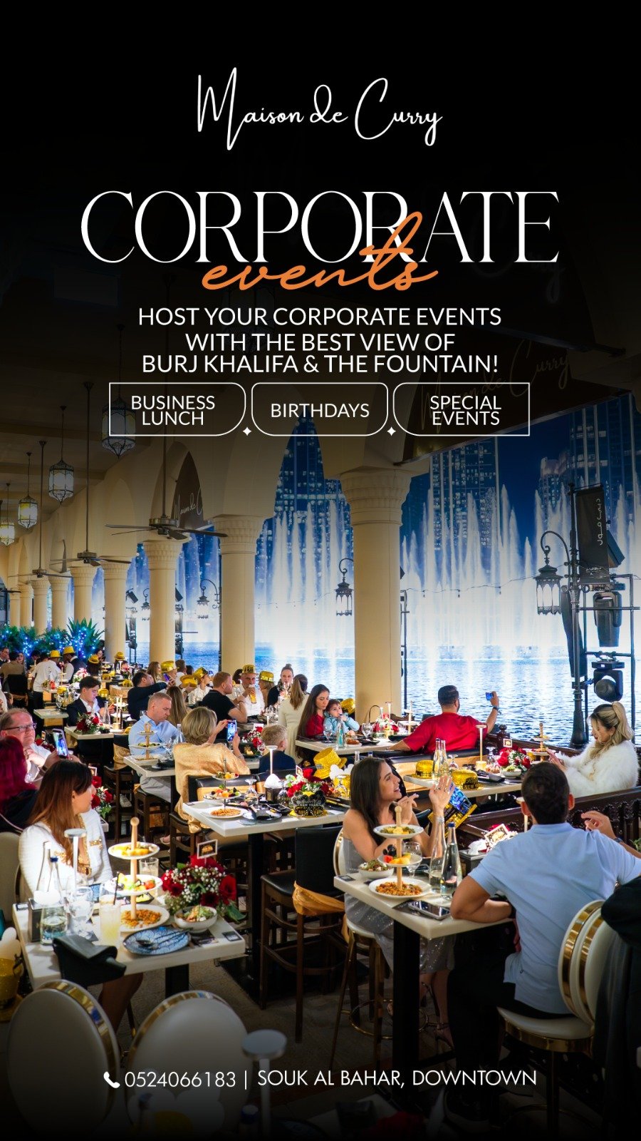 Maison de Curry, by Passion F&B Group (creators of Dubai’s 2 Michelin-star restaurant), offers contemporary dining at Souk Al Bahar with breathtaking views of Burj Khalifa and the Dubai Fountains.
